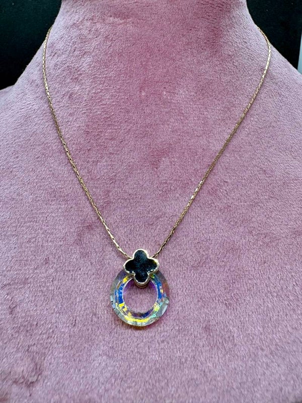 magnifique collier en acier inoxydable de très haute qualité, couleur Rose Gold, la trèfle de quatre à deux couleurs blanc et noir .